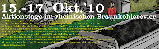 Als Beitrag zum globalen Aktionstages für Klimagerechtigkeit findet vom 15.-17. Oktober im rheinischen Braunkohlerevier eine Veranstaltungsreihe statt, mit der die Klima-schädlichen Machenschaften von RWE Power als größtem CO2-Verschmutzer Europas angeprangert werden sollen.